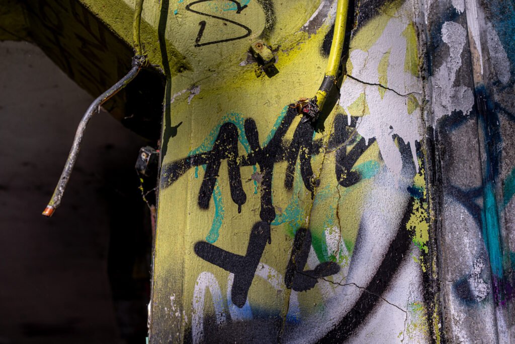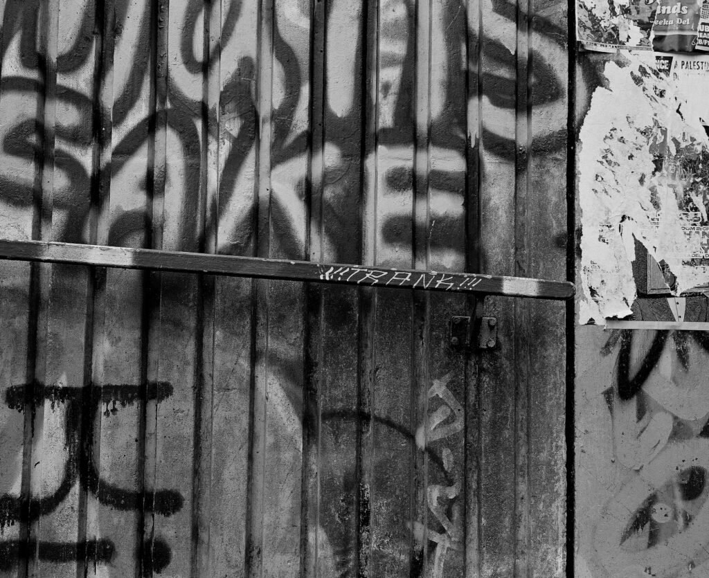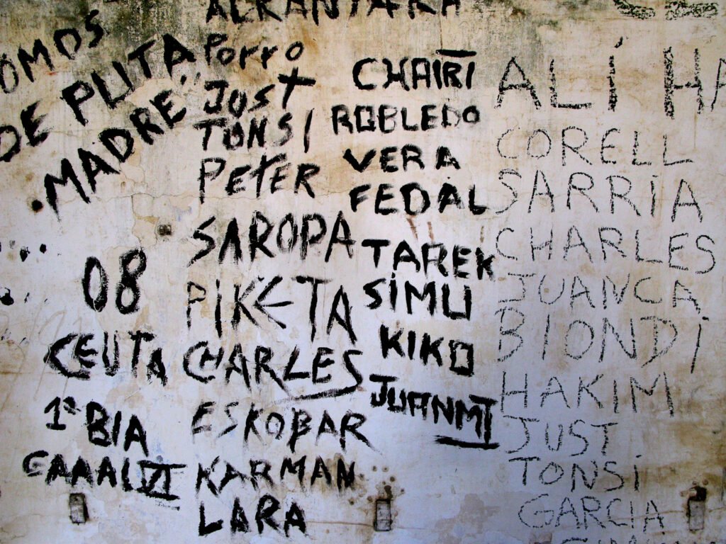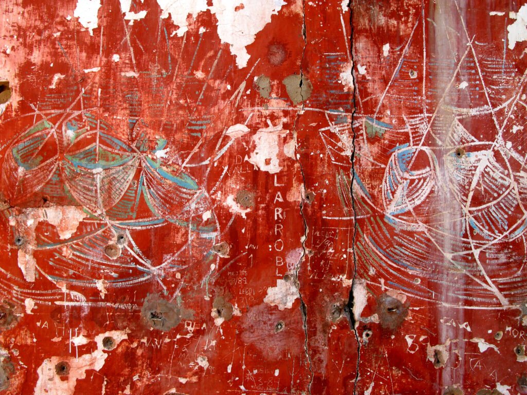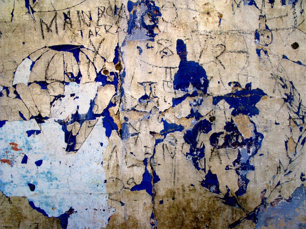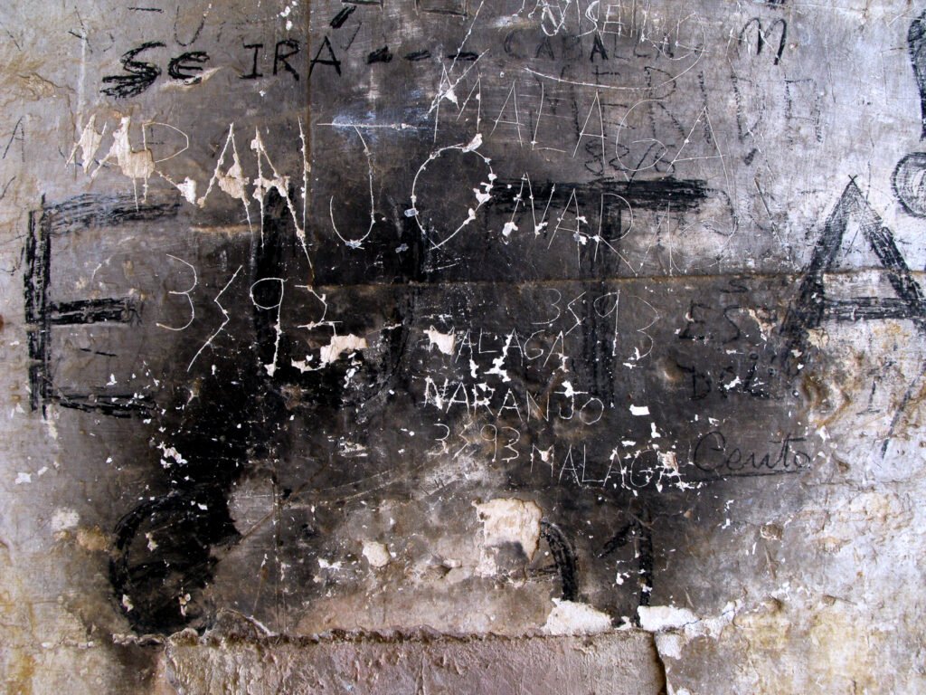 I think for me markings on public walls became of interest during a visit to Andalucia in southern Spain pre 2008. The culture of Spain had long interested me and whilst searching for flamenco, gypsies and Spanish Civil War locations I came upon the ruins of a former army barracks in hills near Tarifa. The combination of the environment of a former Franco-ist barracks, the textural age-related deterioration of the buildings, the colours, the use of words, the illustrations sometimes scratched into the fabric of walls and the divided politics conveyed a sense of communication, or lingua franca, to me.