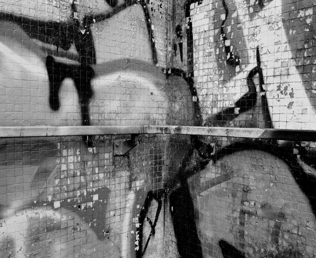 Here are several images from Wednesday. Using an old Mamiya 7 rangefinder camera with a 65mm f4 lens, i photographed some of the fabric of the underpass with monochrome film.