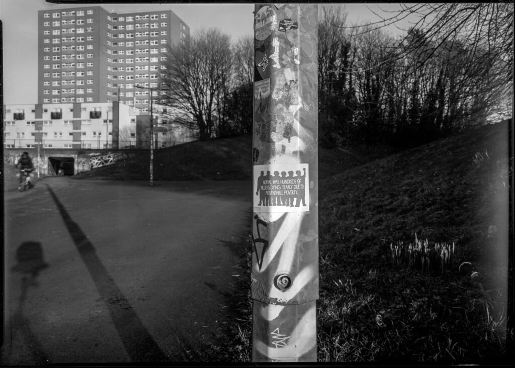Over the last week I have made 3 visits to lawrence Hill roundabout, making images on 4 different cameras. Three of those cameras were classical film cameras and contained monochrome film. Here are a selection of photographs documenting the landscape in monochrome, in classical documentary style.