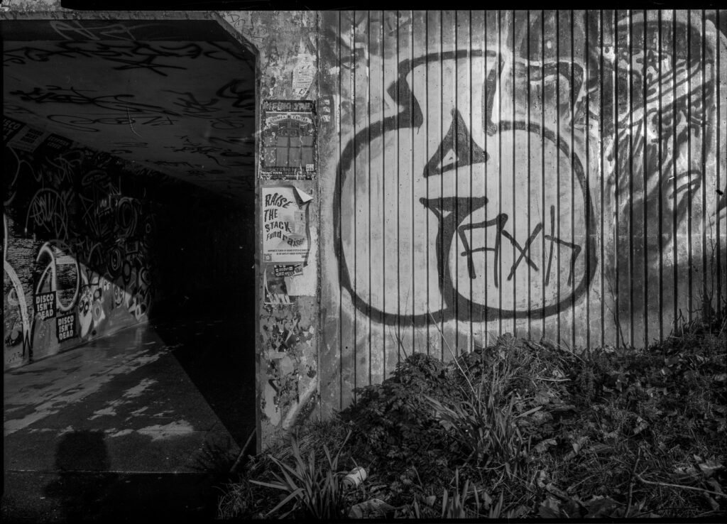 This is a developing study, with a vision it will end with a pop-up exhibition at the centre of the underpass some time in March, on a date yet to be determined. The exhibition will be a combination of colour and monochrome prints. The colour images I already have and just need to be printed. The monochrome prints will be entirely new, and a mixture of images taken on a medium format camera and a large format camera.