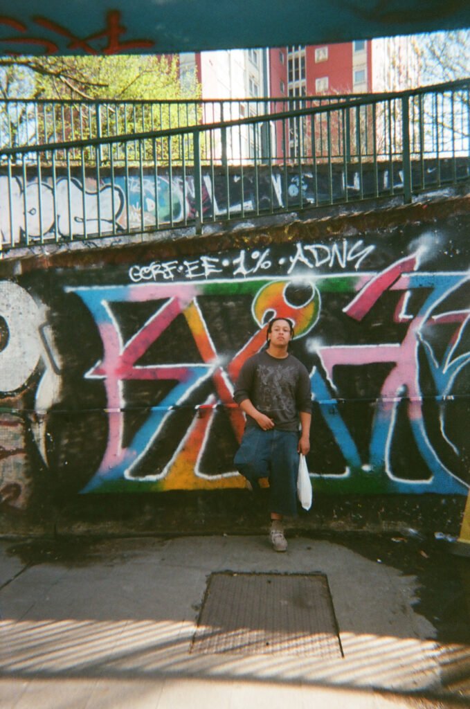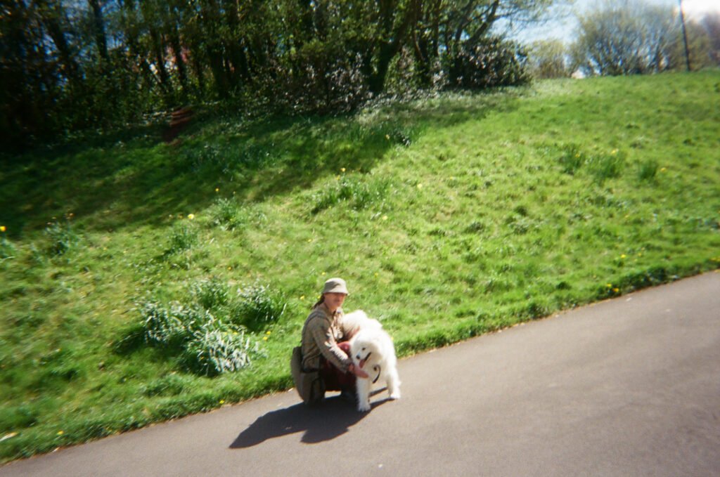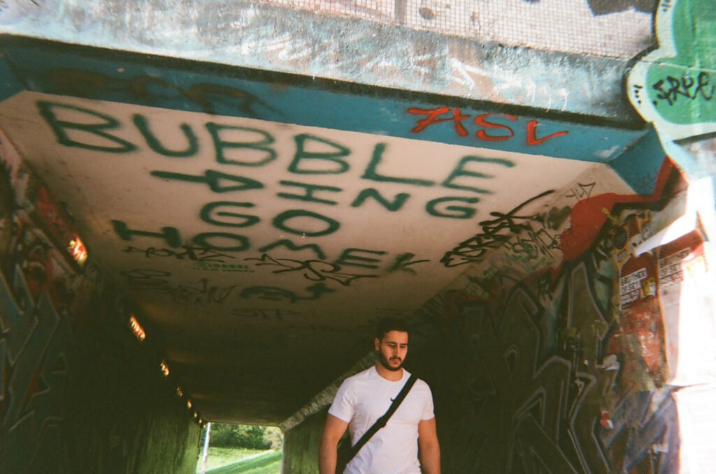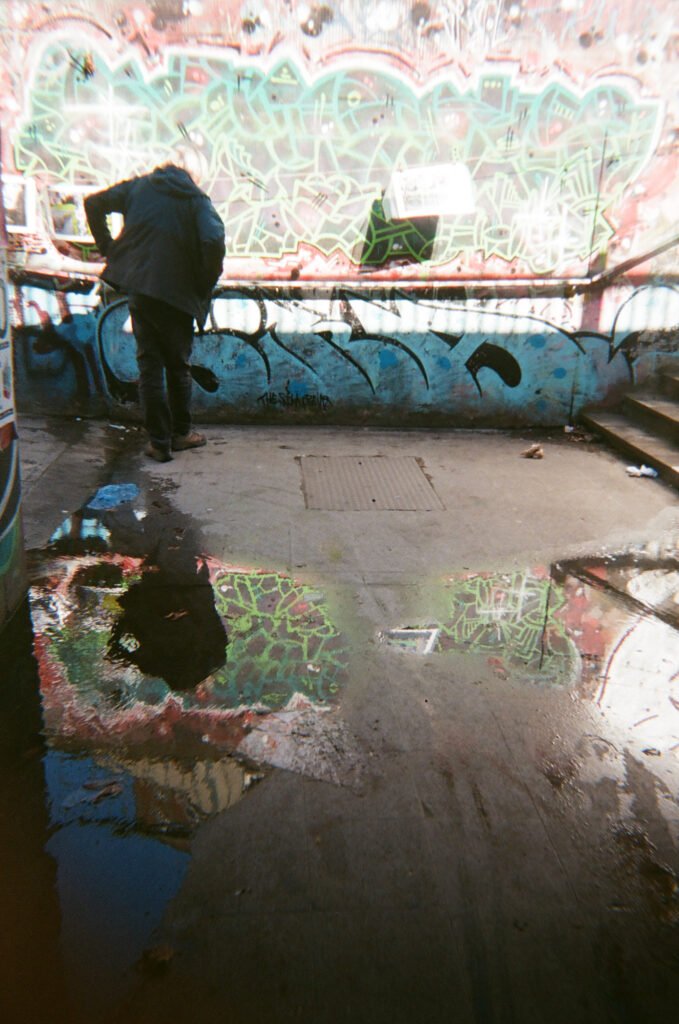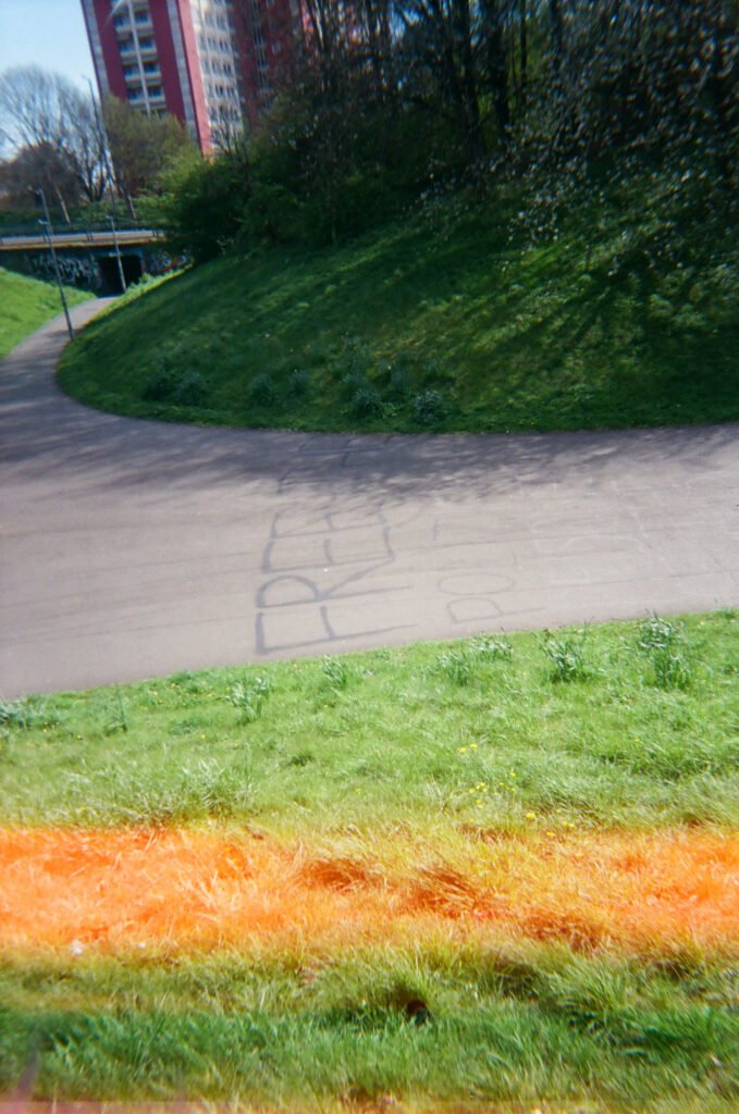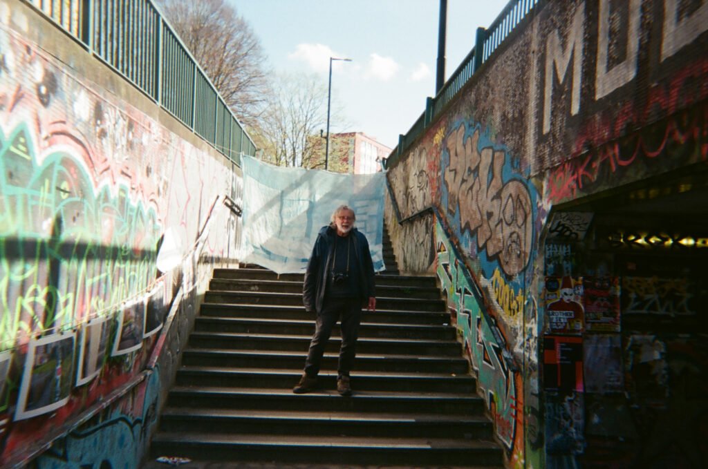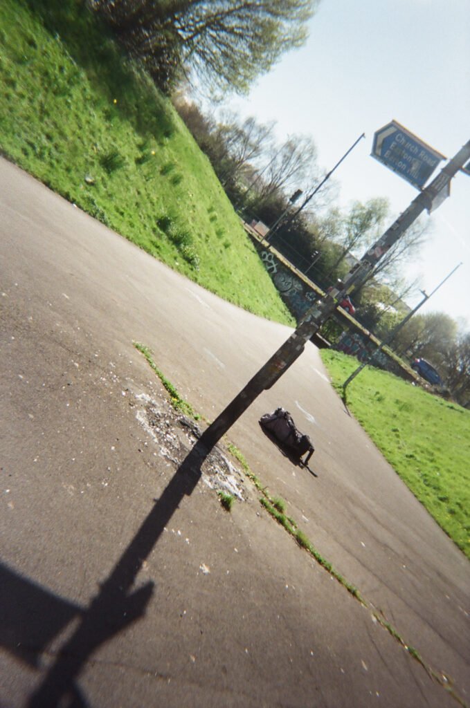 I continued to make portraits, this times asking people to complete the consent forms I had brought. The portraits made were by the lampost i had used often before, and also at the end of the Underpass where I hung again my Cyanotype cloth. This was also next to where I was exhibiting 12 images of the roundabout i had taken earlier in the Project.