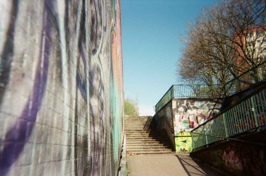 I travel from Taunton to Bristol and Lawrence Hill Roundabout by train. The short journey from Bristol Templemeads to the Roundabout is also visually interesting. The overwhelming visual stimulation of an urban/city environment is particularly relevant in Bristol given its international reputation for street art.